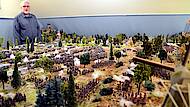 Dies ist ein gigantisches Modell: 8000 Zinnsoldaten stellen in diesem Diorama eine Napoleon-Schlacht nach. Karsten Neumeyer aus Kirchberg hat mit den knapp 8000 Zinnfiguren ein zwölf Quadratmeter großes Diorama geschaffen. Gerade einmal 15 Millimeter sind die Figuren groß, die er zum großen Teil selbst gegossen und bemalt hat. Auf seinem Diorama ist zwar keine Schlacht dargestellt, die real statt gefunden hat. Neumeyer hat seiner Fantasie freien Lauf gelassen. Doch Napoleon ist als Minifigur dabei.