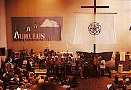 Ich sang bald im Chor unter der Leitung von Ute Carstens mit, steuerte die nächsten Gottesdienstentwürfe bei und schlug 1980 (nach dem Sommerurlaub in Norgaardholz) den gemeinsamen Namen KUMULUS für Chor und Band vor.
