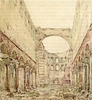 "Zerstörter Innenraum", Ausschnitt eines Aquarells (1946) von Rudolf Glatzel