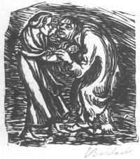 Barlach hat auch als Dichter das unbeirrbare Gefühl. Aber er hat mit dem spröden Wortmaterial nicht in derselben Ausgiebigkeit gerungen wie mit dem Material seiner Plastiken, dem Holz. So gelingt ihm als Wortbildner - aus seinem Gefühl heraus - das Große unfehlbar; das Kleine, das Einzelne aber gerät - aus Mangel an handwerklicher Sicherheit, an Vertrautheit durch jahrelange Schulung - vielfach daneben. ... Barlach krampft, kratzt, drückt. Er überlädt, übertrumpft. Er führt manchesmal ein richtiges Prinzip nur äußerlich - also falsch durch. Er ist im Sprachlichen ohne die Sicherheit und Klarheit der Materialbehandlung, die für seine Plastiken zwar auch nicht das Entscheidende ist - denn das liegt in der Formwerdung der Intuition - sie aber doch als Kunstwerke zur Vollkommenheit werden läßt.