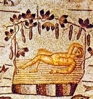 Jona, unter der Kürbislaube ruhend. Mosaik in der Basilika von Aquileia (Anfang 4. Jahrhundert)