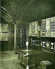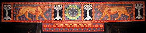 Der dritte ein wenig kleinere Gobelin dieser Serie stellt das Wahrzeichen von Löwenberg in Schlesien dar und schmückt die Wand über der Eingangstür; auch er blieb in einem ausgezeichneten Zustand erhalten. In den Breslauer Werkstätten wurden auch Textilien in der Kelimtechnik hergestellt, die als Polsterung für die Eichenstühle und die übrige Ausstattung des Standesamtes verwendet wurden.