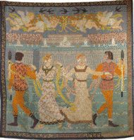 Der im Stil der frühen Renaissance entworfene Gobelin stellt vor dem Hintergrund einer blühenden Frühlingswiese und der hinter ihr sichtbaren Stadt zwei tanzende Paare dar, über denen sich symmetrisch die Liebesgötter erheben. Die in der Komposition enthaltene Bewegung erzeugt einen ausgesprochen dynamischen Eindruck.