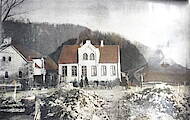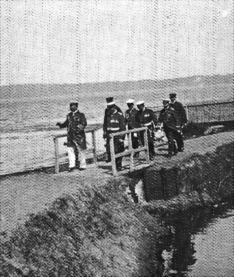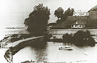 Eine Ziegelei bei Osbek, nahe der Mündung des gleichnamigen Baches, ist schon seit 1700 bekannt. Rechts sind die großen Trockenschuppen zu sehen. Als das Bild in den 1880er Jahren aufgenommen wurde, war das Werk noch in Betrieb. Es wurde jedoch 1900 stillgelegt, bevor der Staat das gesamte Gebiet kaufte, um den Marinestützpunkt und die Marineoffiziersschu le anzulegen.